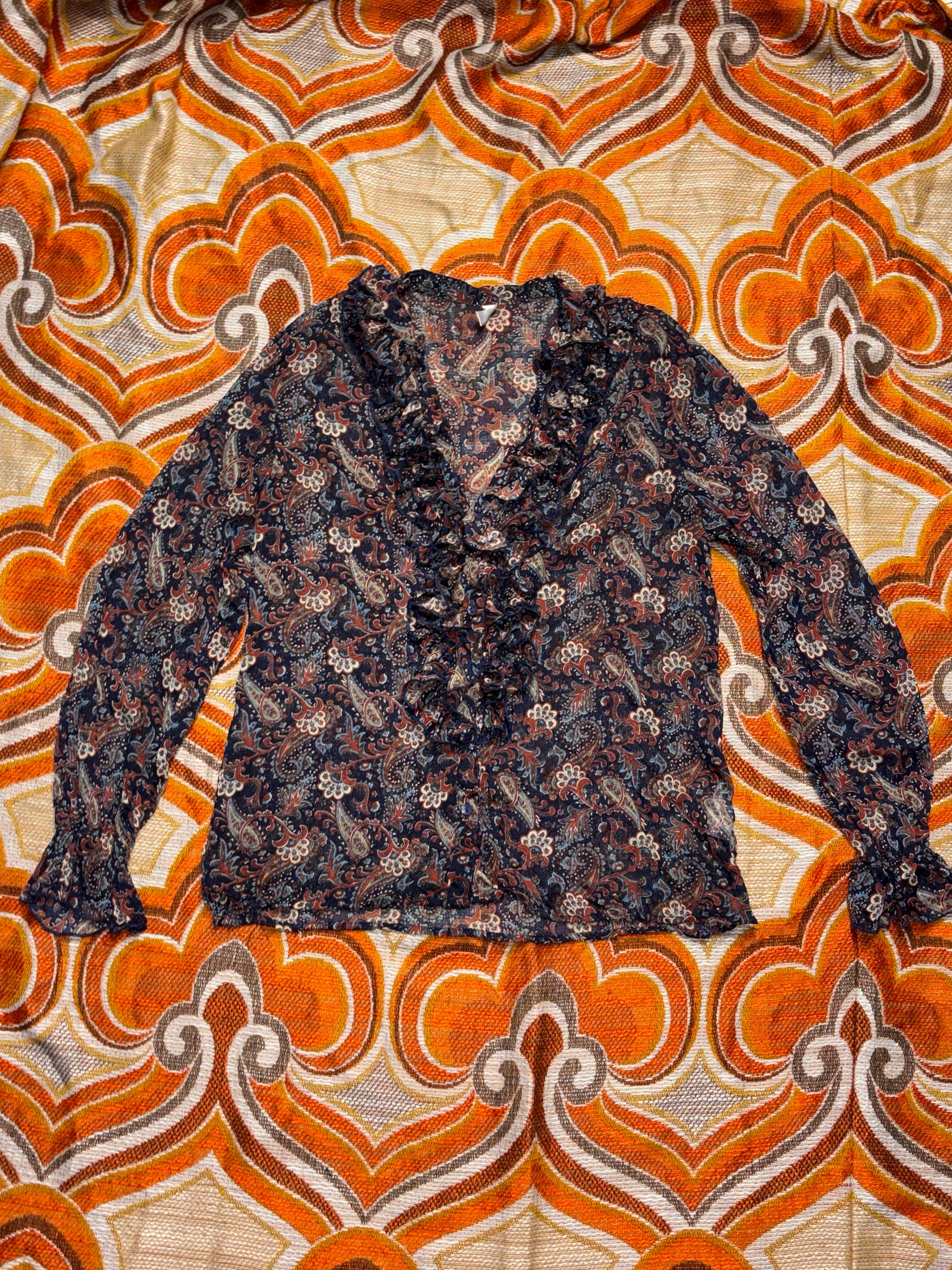 00s Paisley sheer frill blouse